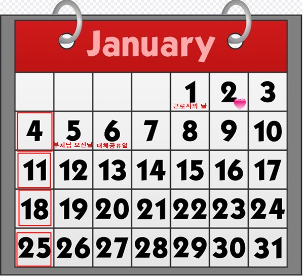 - 관공서에는 공휴일로 적용
